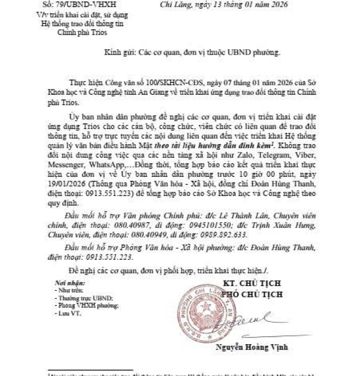 - 26/01/2026Ngày 13/01/2026, đồng chí Chủ tịch UBND phường Chi Lăng - Lê Ngọc Tấn đã ký ban hành văn bản số 77 /UBND-KT về việc tăng cường công tác an toàn, phòng chống cháy, nổ tại các chợ trước, trong và sau dịp Tết Nguyên đán Bính Ngọ 2026.