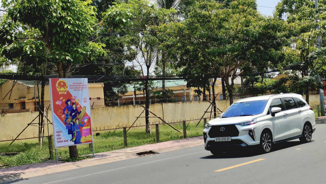 Trên các tuyến đường như: Tỉnh lộ 948, hương lộ 11; Khu phố 1, Khu phố 2; đường Lê Thánh Tôn, Tú Tề, Voi I,...hàng loạt cụm pano, áp phích lớn với nội dung tuyên truyền về quyền và nghĩa vụ của cử tri được lắp đặt nổi bật, tạo không khí sôi nổi.