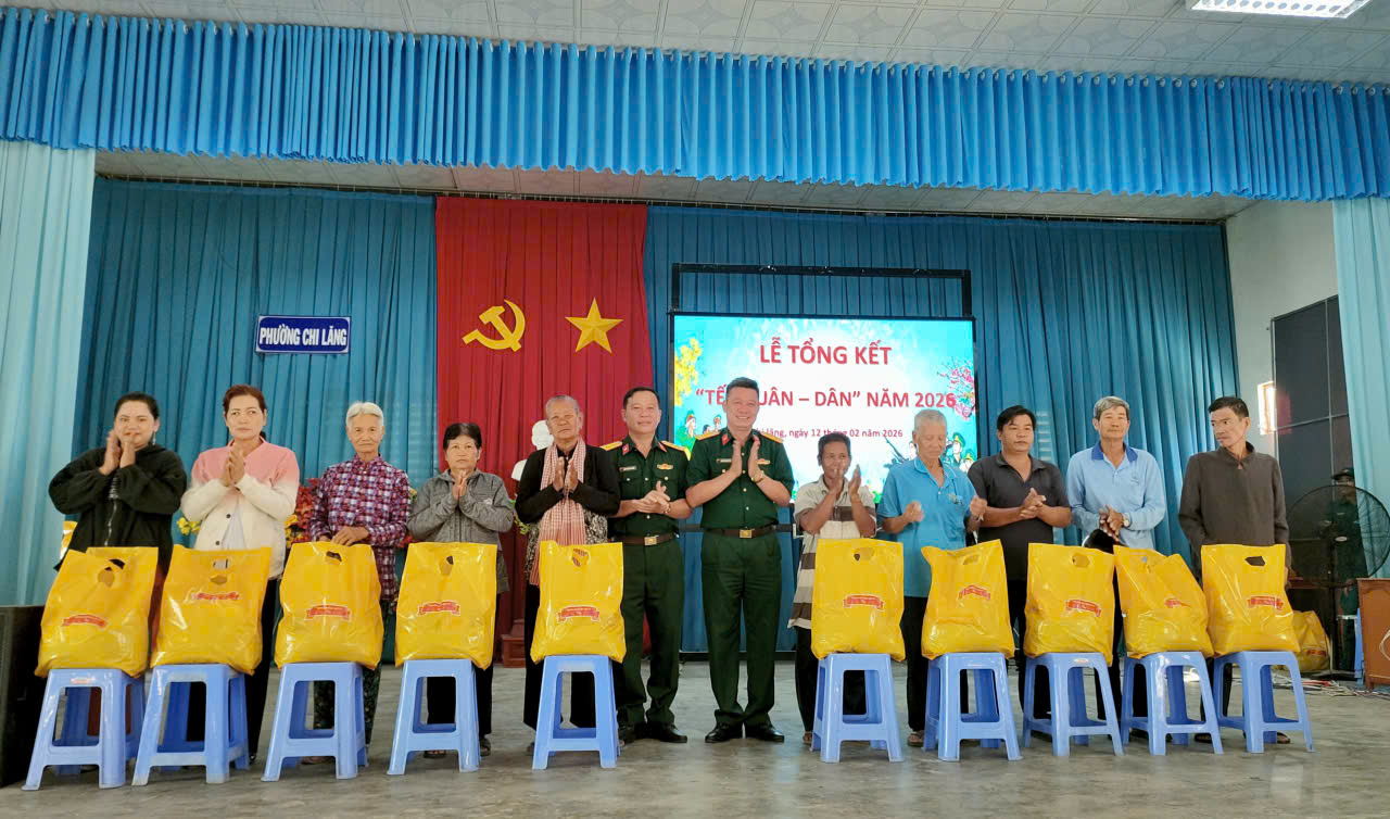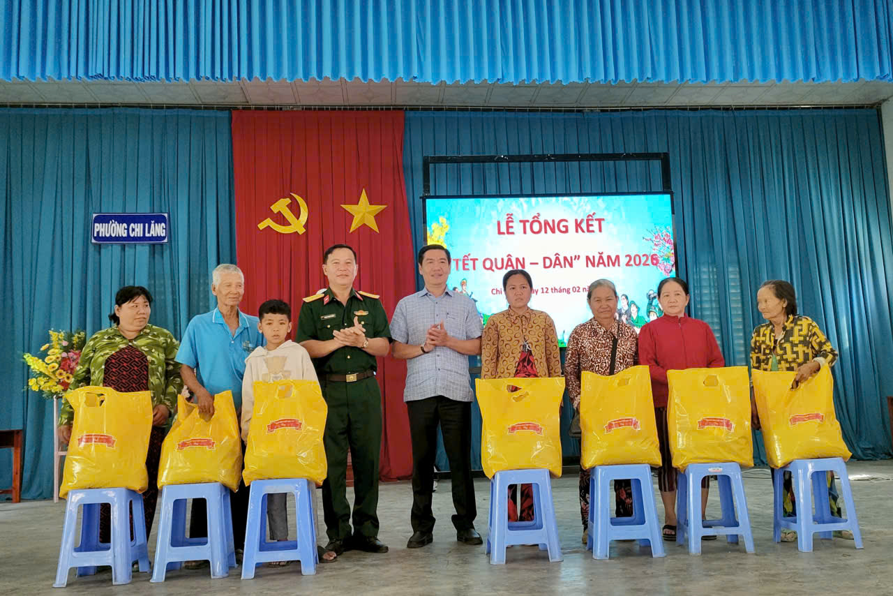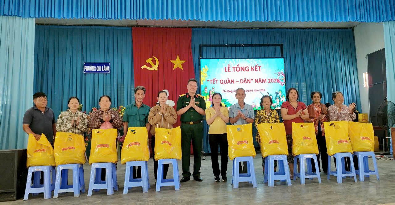 Chương trình “Tết Quân - Dân” năm 2026, với chủ đề “Đảng bộ, chính quyền, nhân dân và lực lượng vũ trang phường Chi Lăng tiếp tục chung tay xây dựng đô thị văn minh”. Với tổng kinh phí thực hiện trên 1 tỷ, 417 triệu đồng. Thông qua chương trình, nhiều hoạt động ý nghĩa đã được triển khai như: tổ chức vệ sinh môi trường, bê tông hóa đoạn đường thuộc khóm Tân Thuận dài 170 mét; khánh thành công trình “Thắp sáng đường quê” lắp đặt 15 đèn năng lượng mặt trời; trao tặng 01 mái ấm ATV, 01 căn nhà đồng đội, 01 căn nhà đại đoàn kết; khám bệnh, cấp phát thuốc miễn phí; thăm hỏi, tặng quà các gia đình chính sách, hộ khó khăn; tổ chức gói, nấu bánh tét; tổ chức sôi nổi các hoạt động văn nghệ, thể dục, thể thao,... Qua đó, góp phần nâng cao đời sống vật chất, tinh thần cho nhân dân; tạo không khí vui tươi, phấn khởi trong những ngày giáp Tết cổ truyền của dân tộc.