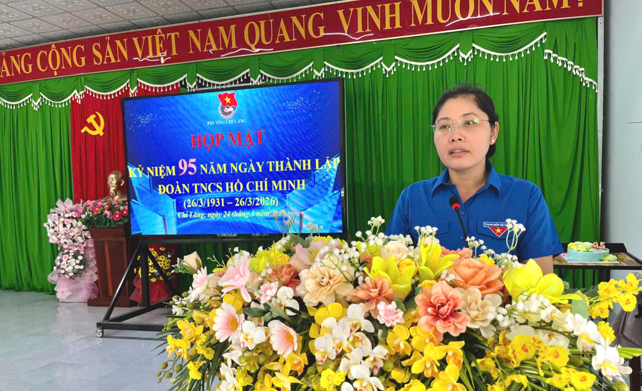 Chiều 24/3, Phường đoàn Chi Lăng tổ chức họp mặt kỷ niệm 95 năm ngày thành lập Đoàn Thanh niên Cộng sản Hồ Chí Minh (26/3/1931 - 26/3/2026). Tham dự buổi họp mặt có đồng chí Phan Thành Dũng - Bí thư Đảng ủy, Chủ tịch HĐND phường; đồng chí Lê Ngọc Tấn - Phó Bí thư Đảng ủy, Chủ tịch UBND phường; đồng chí Chau Thị Thu Thủy - Chủ tịch MTTQ Việt Nam phường. Cùng lãnh đạo các đơn vị lực lượng vũ trang đóng quân trên địa bàn; nguyên cán bộ Đoàn qua các thời kỳ và đông đảo đoàn viên, thanh niên cùng tham dự.
