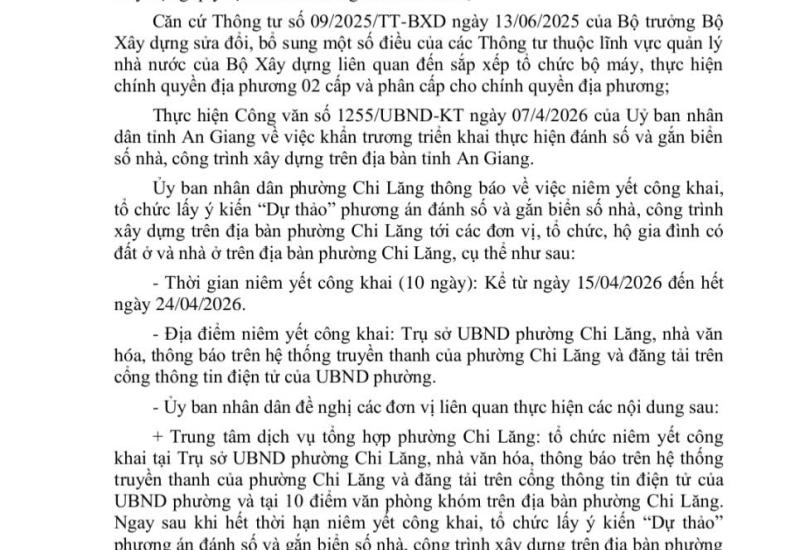 THÔNG BÁOVề việc niêm yết công khai, tổ chức lấy ý kiến “Dự thảo” phương án đánh